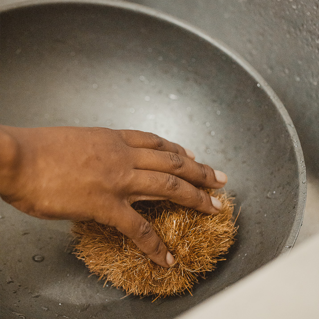 Escovas de fibra de côco para lavagem de louça.